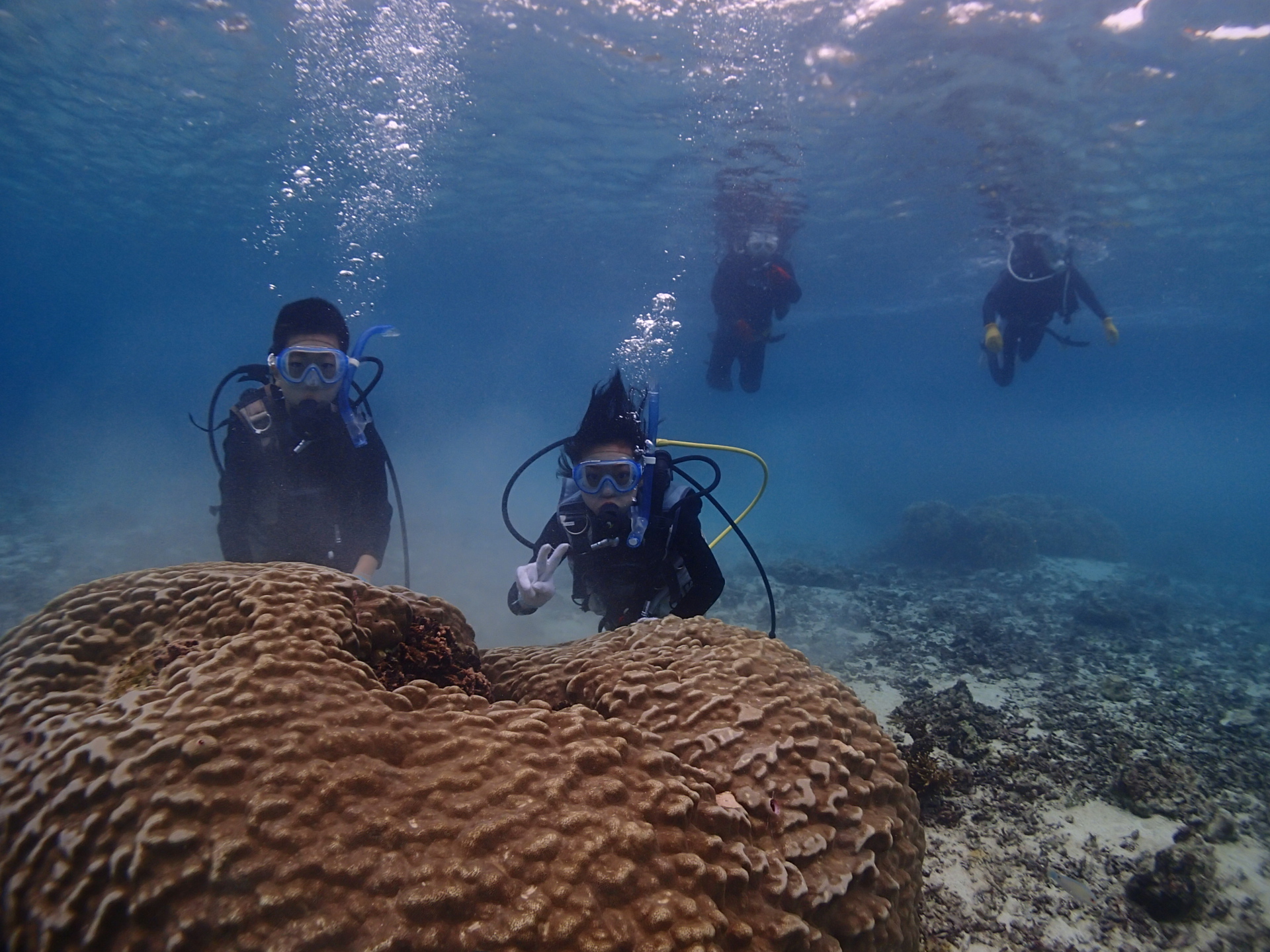 皆で一緒にサンゴやお魚を見て楽しんできましたよ