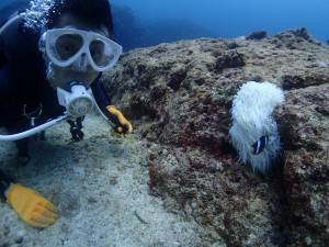 とても寒がってましたが上がってきたら『まだ潜りたい~でも凄く寒い』