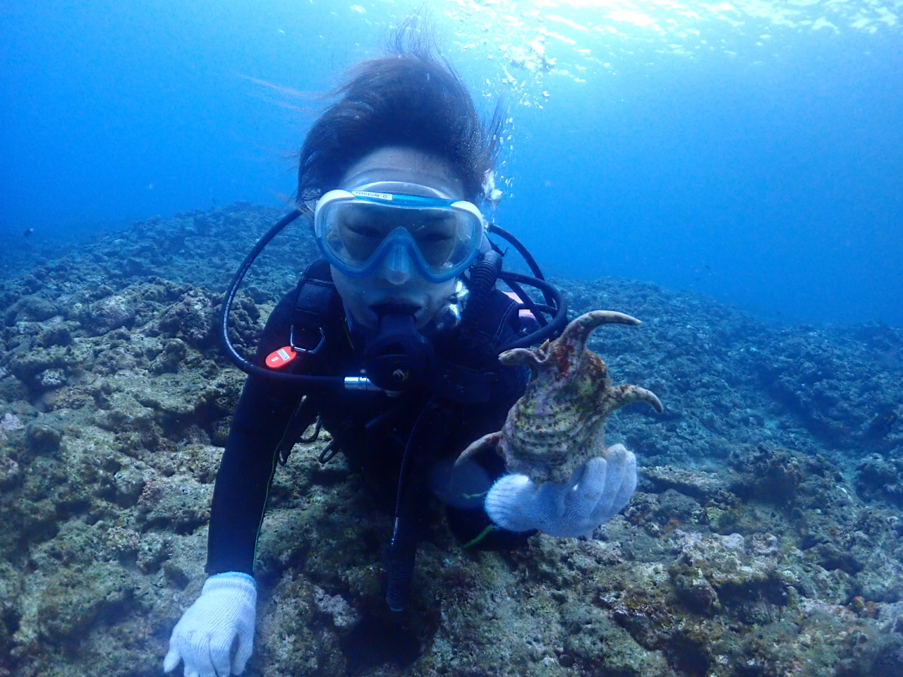 7年振りとはいえとても落ち着いて体験ダイビングをお楽しみ中![]()
