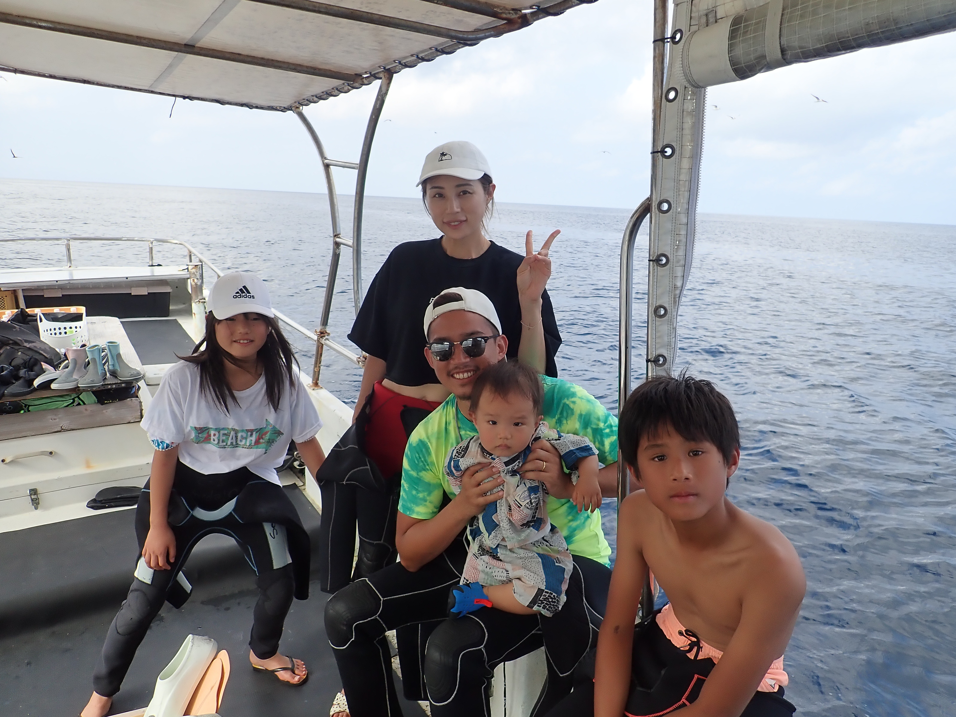 今日は赤ちゃんも乗船してご家族で下地島方面で体験ダイビング![]()
