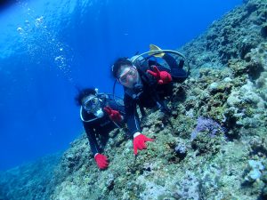 初めての体験ダイビングはバックロールがドキドキしたそうですが、水中はとっても落ち着いていらっしゃいました。