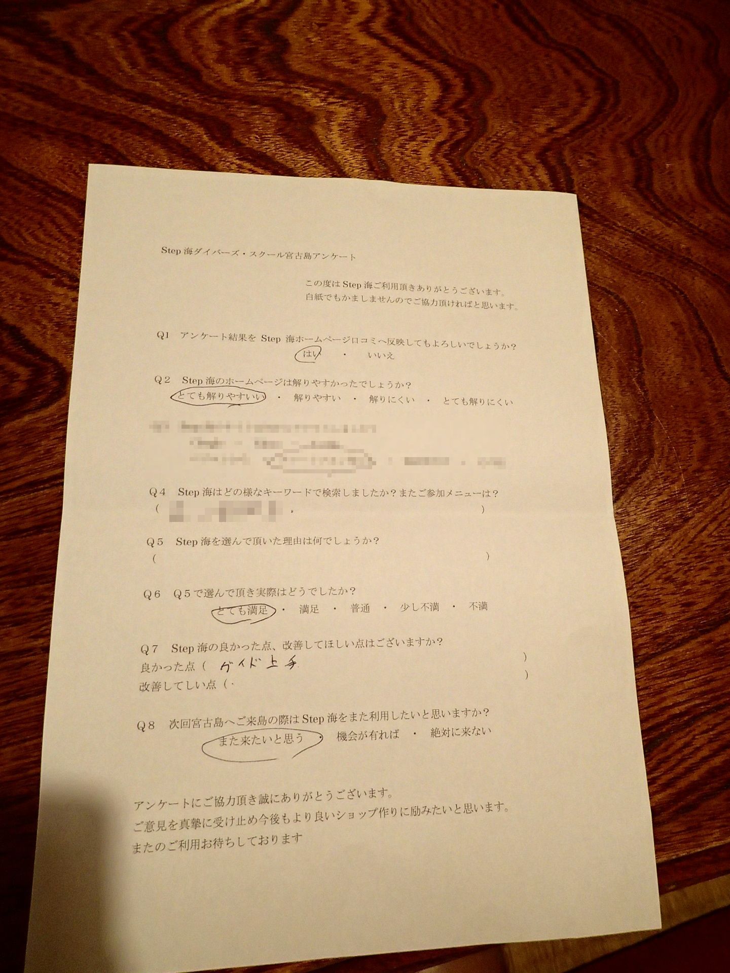 ご利用頂きましたゲストにご了解を頂、簡単なアンケートに答えて頂きました