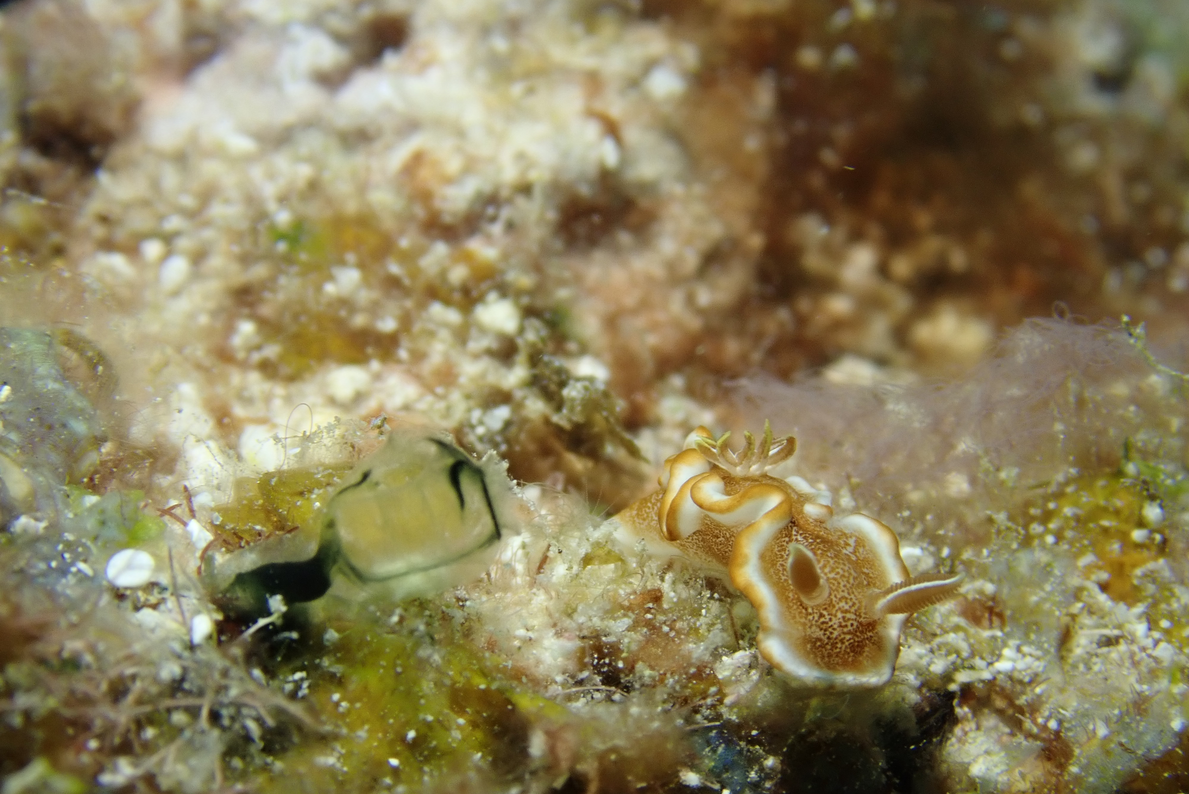 キャラメルウミウシ? と クロスジリュウグウウミウシ